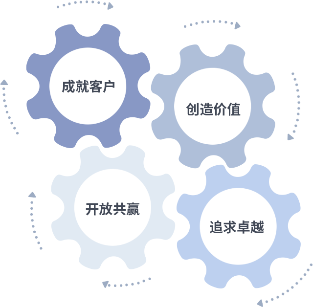 成就客户是一切决策的出发点,创造价值是衡量所有工作的标准,追求卓越是yh86银河国际做事做人的态度,开放共赢是yh86银河国际的格局也是最终的结果。价值观的齿轮环环相扣,推动着组织里的每个人不断向前。